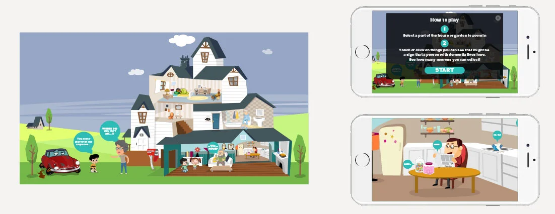 In addition a game was developed to teach kids how dementia can manifest itself in their relative – that it was ‘normal’ and not scary, and give them tools to deal with those situations.